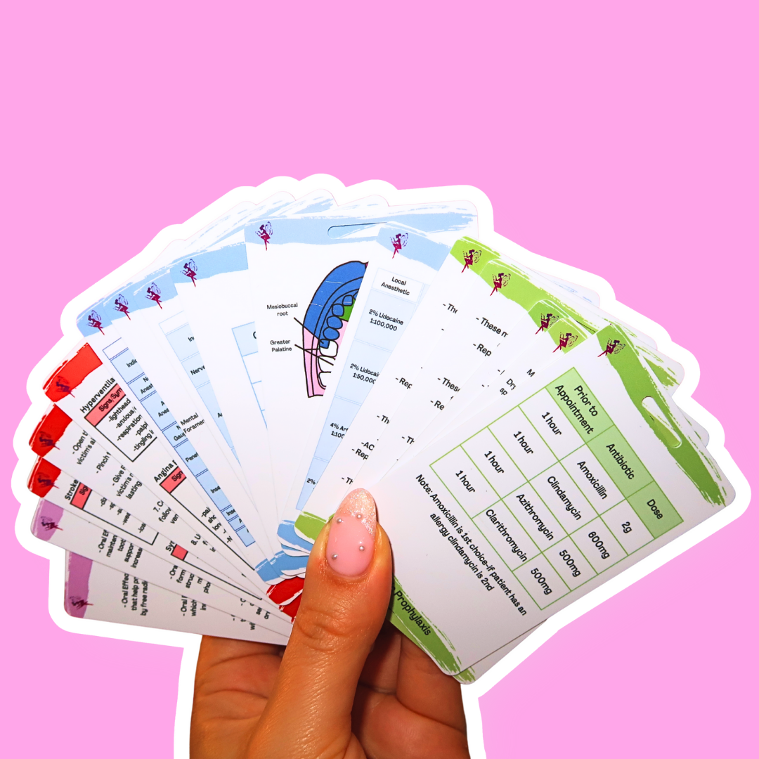 For students who want a deeper clinical resource, this deluxe set includes 16 reference cards covering pharmacology, local anesthesia, medical emergencies, and more.